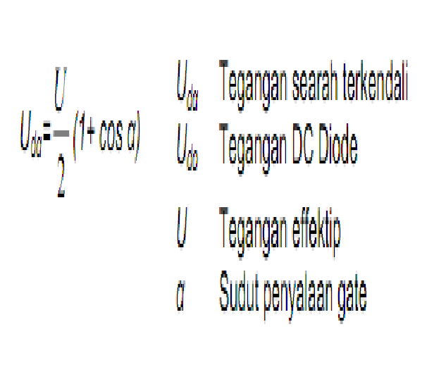 Untuk beban mengandung resistif dan induktif, pengaturan sudut α dari 0° sampai 90° saja, berlaku persamaan tegangan sebagai berikut: